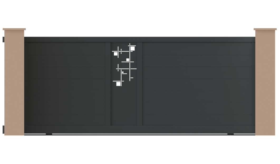 La gamme Grafity se caractérise par ses lames pleines, offrant un aspect à la fois sobre, moderne et discret. Ces portails sont parfaits pour ceux qui cherchent à associer esthétique moderne et intimité. La découpe Géométrix personnalise avec élégance votre entrée. La découpe Bulles offre à ce portail une touche de personnalisation contemporaine.